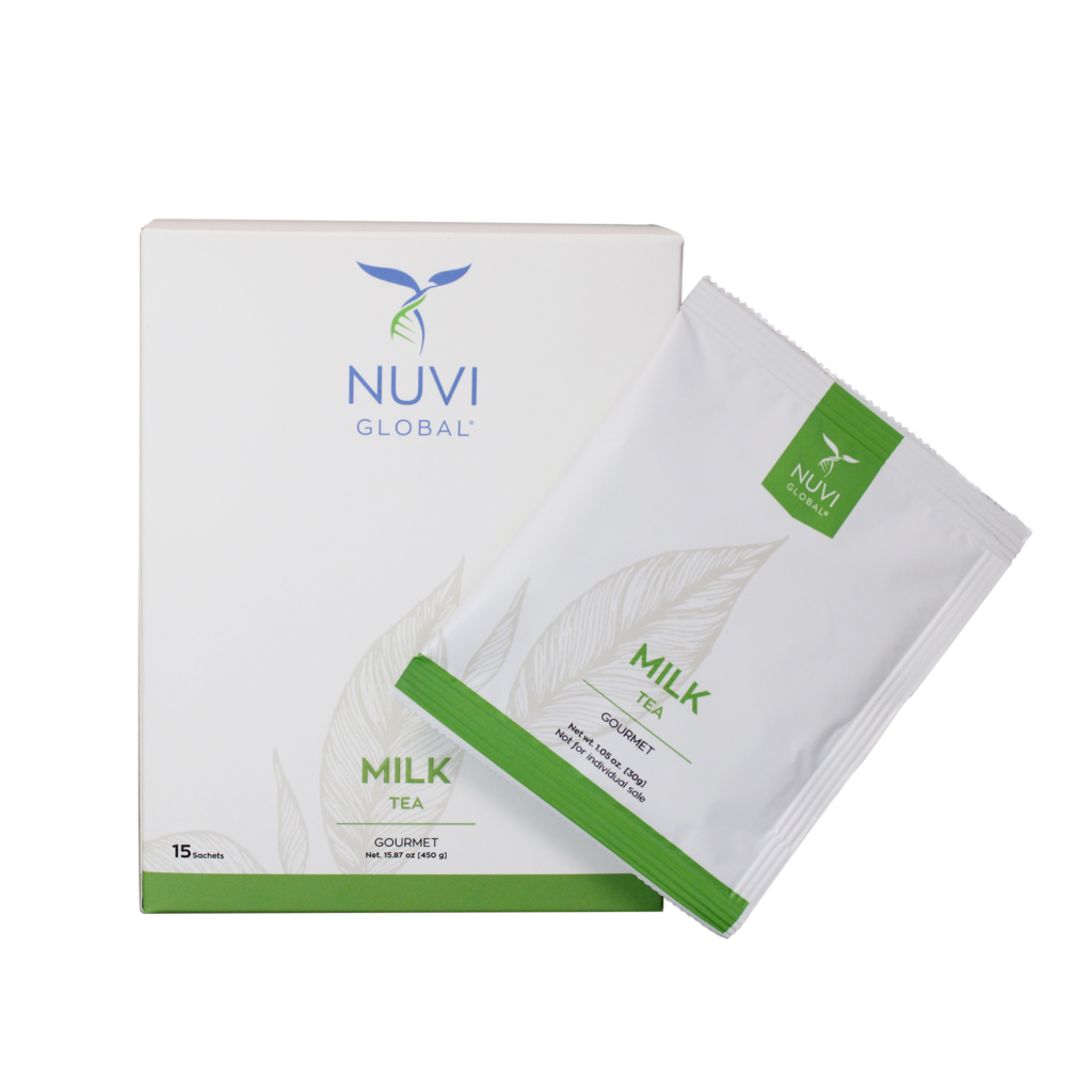 Treat yourself to the new Nuvi Milk Tea. The perfect blend of black tea, lightly sweetened milk, and reishi mushroom to revitalize your spirit and boost your immune system.